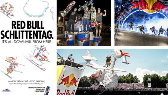 What does that look like? Well early on, two decades ago – Red Bull showed us that it looked like little cars on the roads everywhere and extreme sporting events and off-beat competitions like the flugtag and the schlittentag.